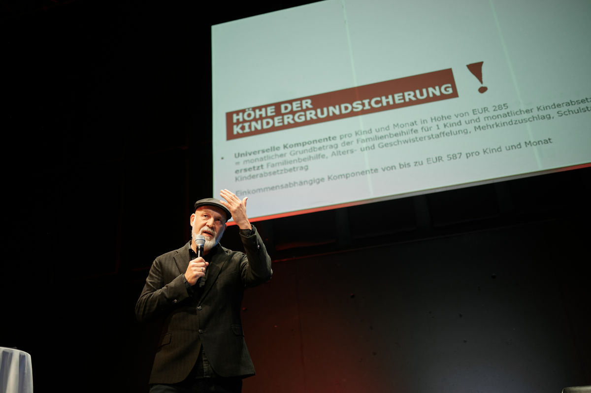 “Armut heißt kein Geld” Zum Schluss präsentierte Volkshilfe-Direktor Erich Fenninger die Zahlen und Fakten im Zusammenhang mit der Kindergrundsicherung und unterstrich die Finanzierbarkeit, Realisierbarkeit und Durchführbarkeit dieses Konzepts in Österreich. Darüber hinaus erörterte er die demokratiepolitischen Implikationen von Armut, sprach über Strategien zur Bekämpfung der Kinderarmut und zog dabei Erkenntnisse aus dem Stand der Forschung in anderen Ländern.