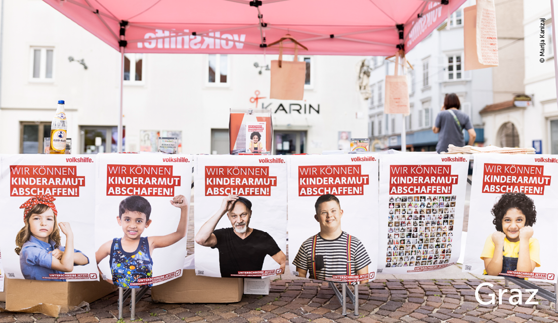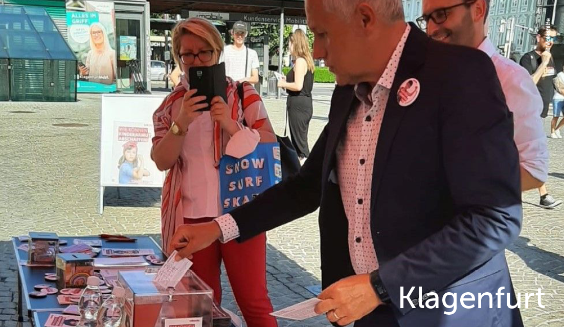 Mit einer gehörigen Portion Enthusiasmus im Gepäck, machte sich das Team der Volkshilfe daher auf den Weg durch ganz Österreich, um möglichst viele Unterschriften für die Einführung einer Kindergrundsicherung zu sammeln. Gestartet wurde die Tour in Bregenz, dann gings über Innsbruck und Salzburg nach Krems. Die zweite Woche startete in Klagenfurt, machte Halt in Graz, Linz und Eisenstadt und führte schließlich nach Wien auf den Karlsplatz.