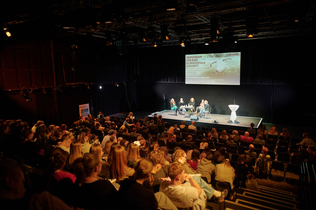 „Wir freuen uns sehr, dass der Kreis der Interessierten jedes Jahr ein bisschen größer wird“, so Judith Ranftler, Bereichsleitung der Abteilungen Soziale Arbeit, Pflege, Forschung und Sozialpolitik, die durch das Programm des diesjährigen Symposiums führte. Die Volkshilfe rückte dieses Thema heuer ins Zentrum, weil die Klimakrise besonders dort wirkt, wo Armut bereits besteht – und Armut die Auswirkungen der Klimakrise verschlimmert. Das Symposium sollte unterschiedliche Perspektiven sichtbar machen und Austausch ermöglichen. Der Saal war voll besetzt, überwiegend mit jungen Besucher*innen, ein deutliches Zeichen dafür, wie sehr die Klimakrise ihre Generation bewegt.